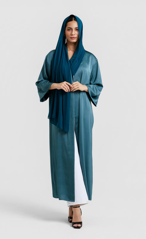 Meet our silk satin abaya – a fusion of modern simplicity and luxurious comfort. The timeless straight-cut silhouette flows gracefully to floor length, enhanced by the crinkle effect for texture and sophistication. Full sleeves ensure modesty, seamlessly combining understated elegance with the smooth, lustrous feel of silk satin. Elevate your style effortlessly with this versatile wardrobe essential.